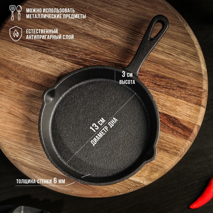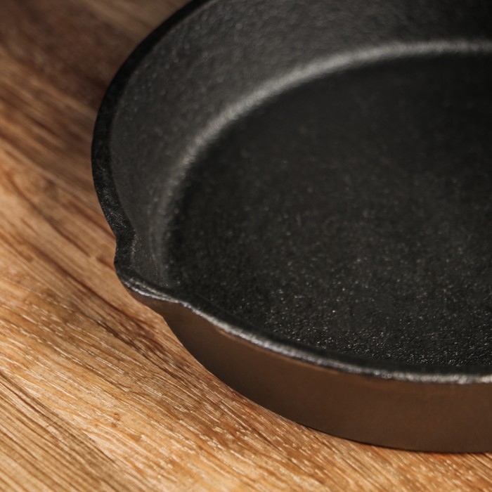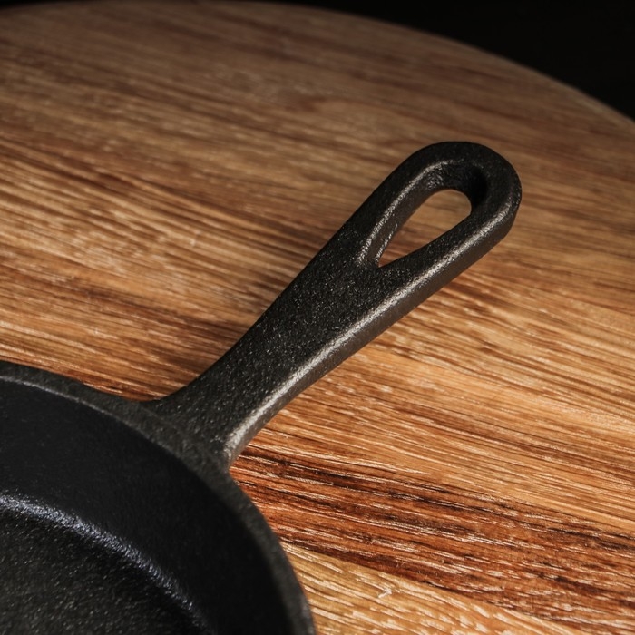 Сковорода чугунная Magma «Вилфред», 15,5×3 см, с 2 сливами и чугунной ручкой