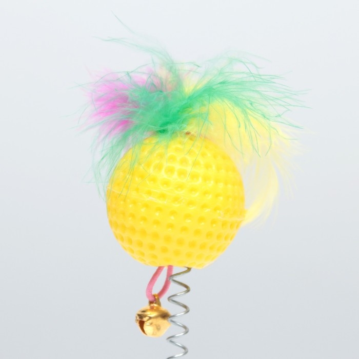 Дразнилка "Рифлёный шар с перьями на присоске", шар 3,8 см, жёлтый