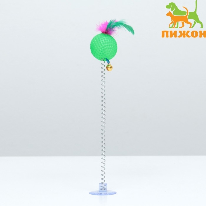 Дразнилка "Рифлёный шар с перьями на присоске", шар 3,8 см, зелёный