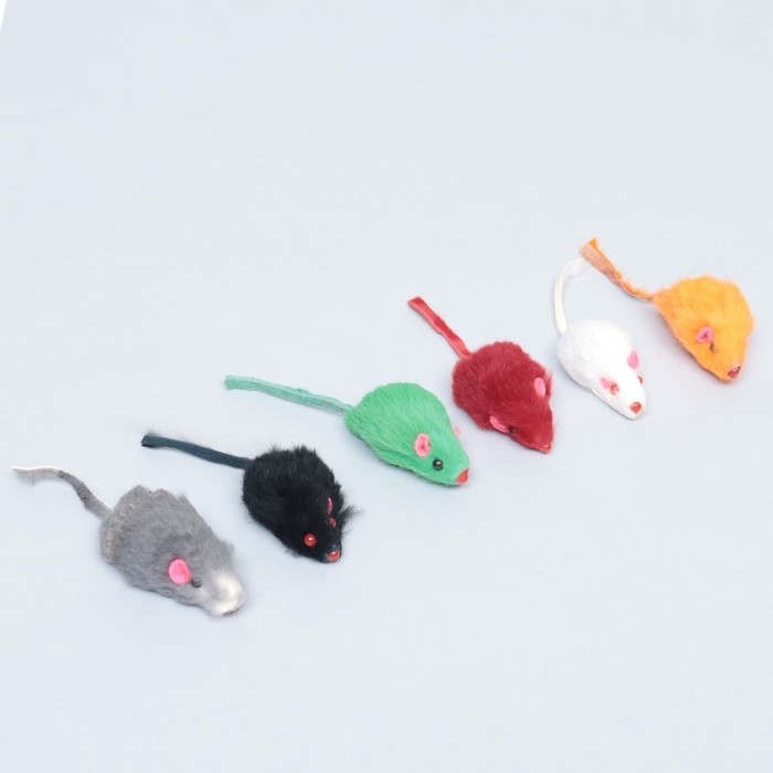 Игрушка для кошек "Малая мышь", натуральный мех кролика, 5 см, микс цветов