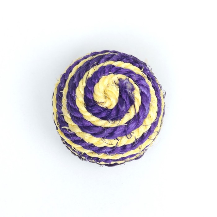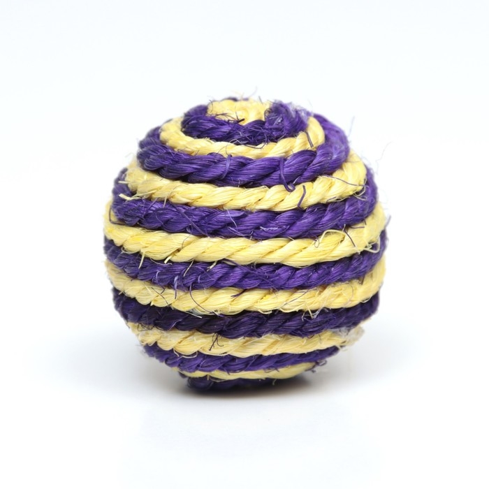 Шарик для кошек из сизали, 4,5 см, жёлтый/фиолетовый