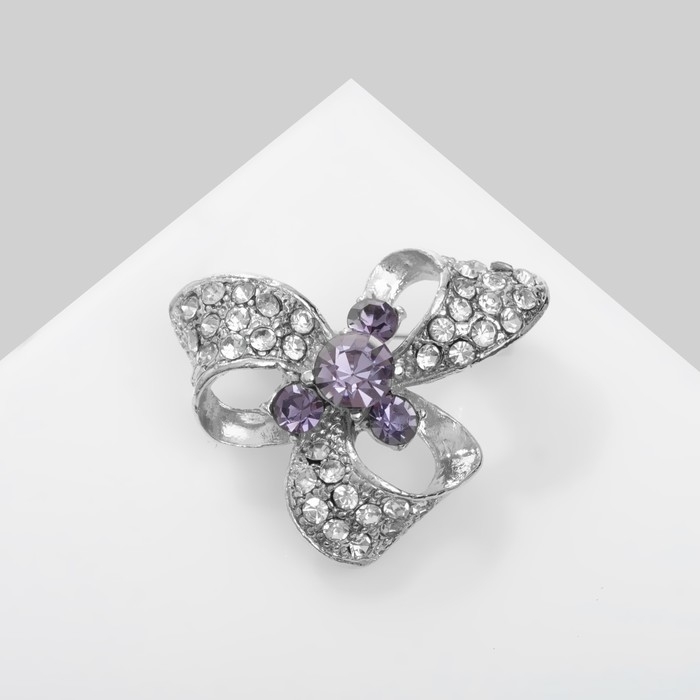 Брошь «Бант» с камнем, цвет бело-сиреневый в серебре