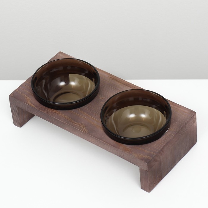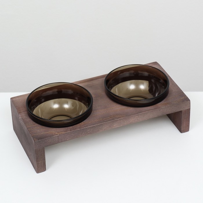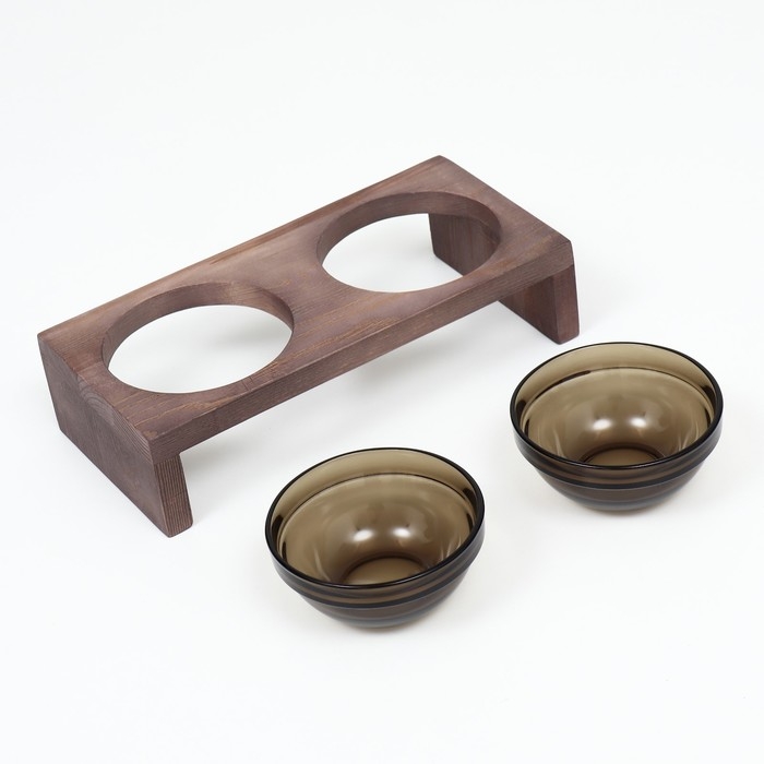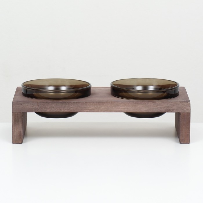 Подставка двойная с мисками из тёмного стекла 30 х 14,5 см х 6,5 см 2х250 мл, венге