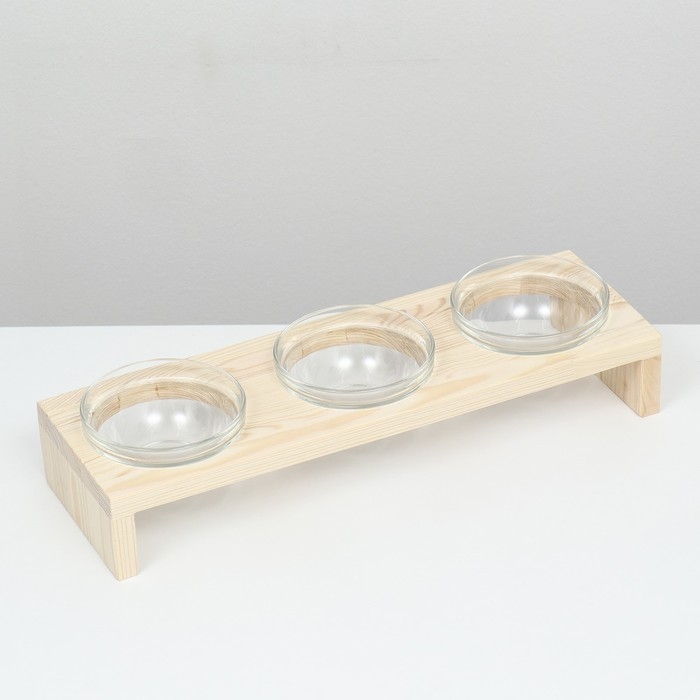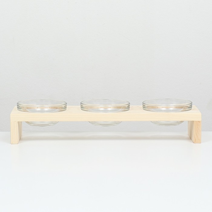 Подставка тройная с мисками из прозрачного стекла 45 х 14,5 см х 6,5 см 3х250 мл