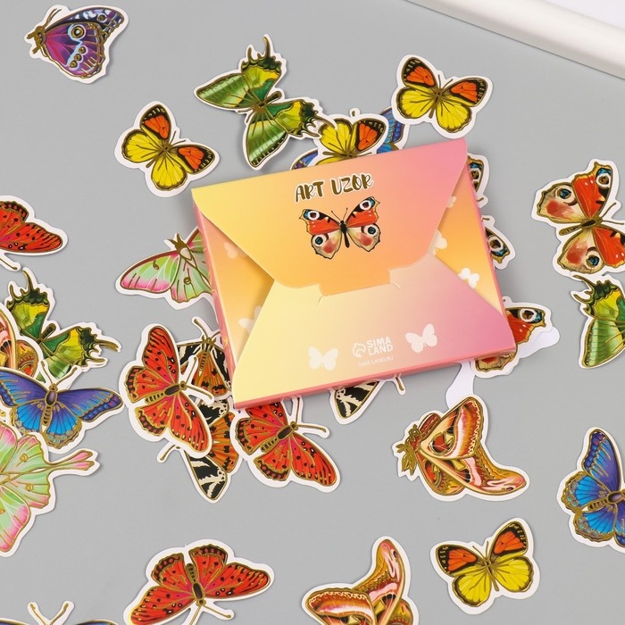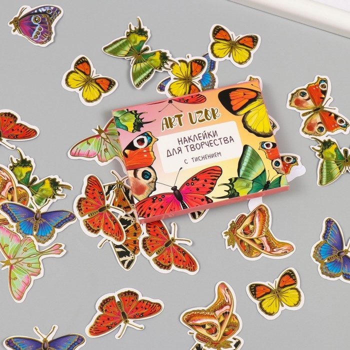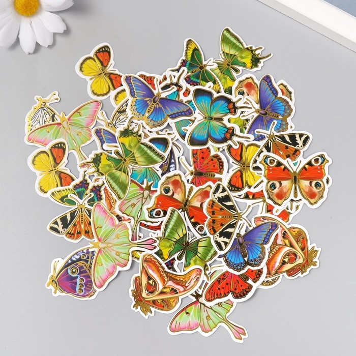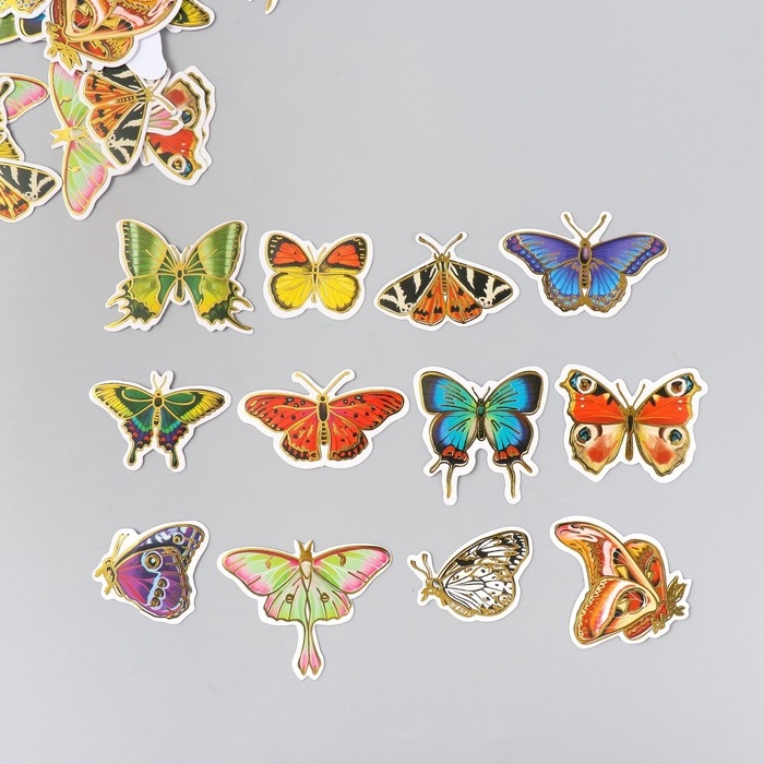 Наклейки для творчества "Мир бабочек" тиснение золото набор 48 шт 9х7х0,8 см