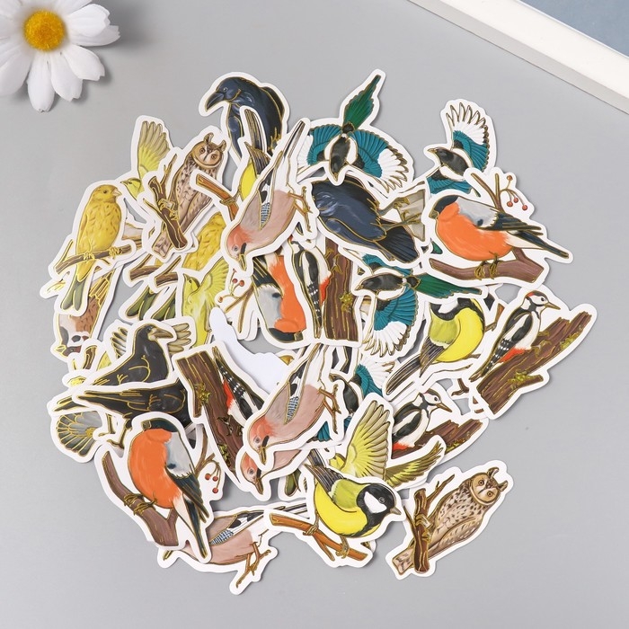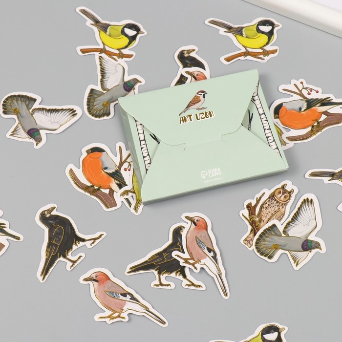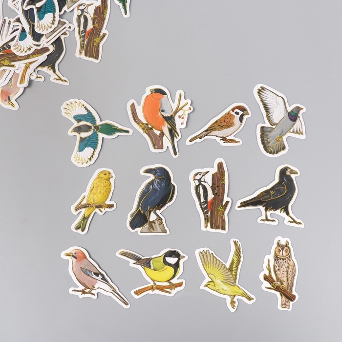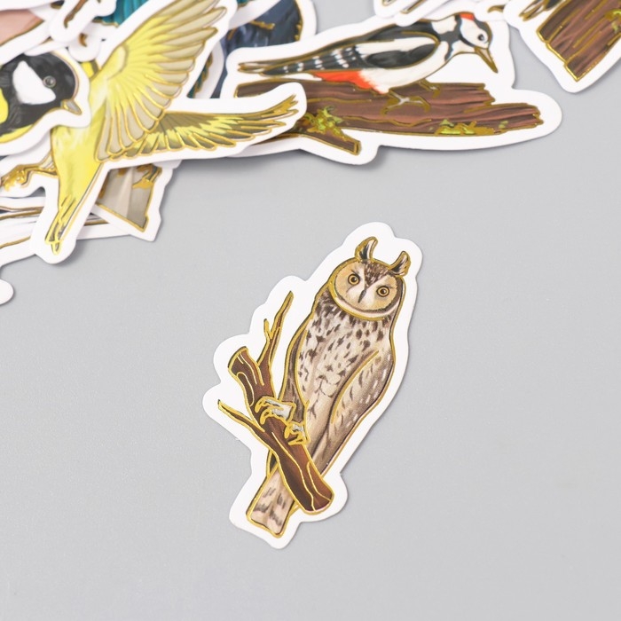 Наклейки для творчества "Городские и лесные птицы" тиснение золото набор 48 шт 9х7х0,8 см