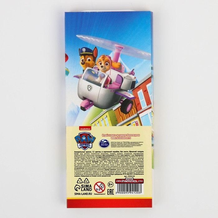 Акварель медовая «Щенячий патруль», 12 цветов, в картонной коробке, без кисти