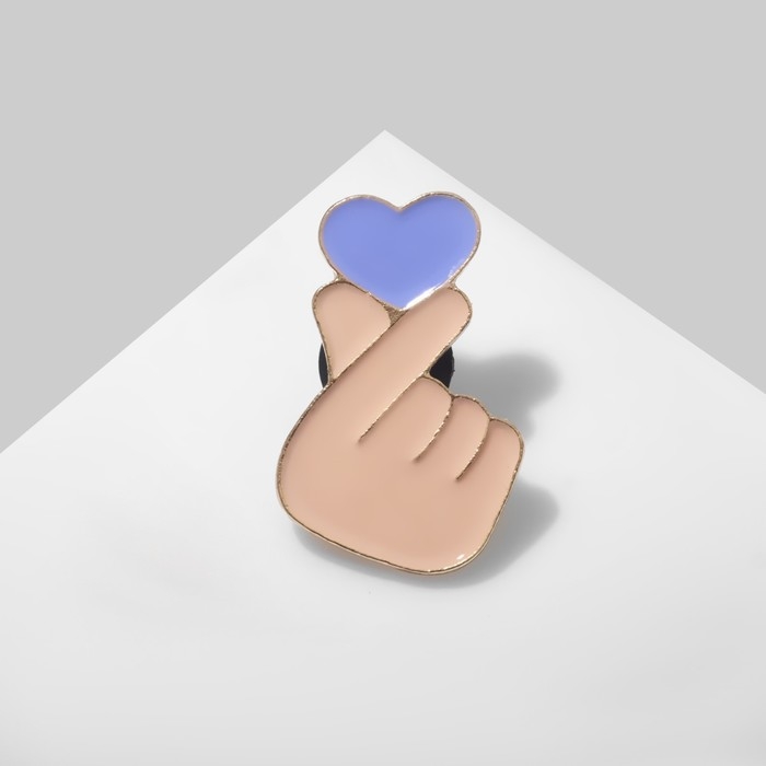 Значок «Сердце» жест любви, цвет бежево-сиреневый в золоте