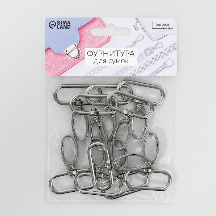 Карабин металлический, 45 × 32 мм / 27 × 2,5 мм, 10 шт, цвет серебряный