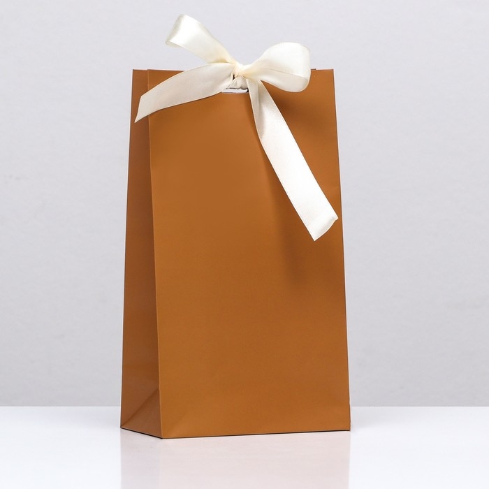 Пакет подарочный с лентой «Коричневый» 13 х 23 х 7 см, 1 шт.