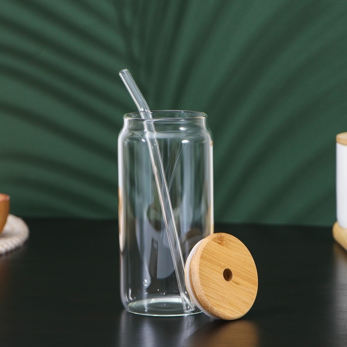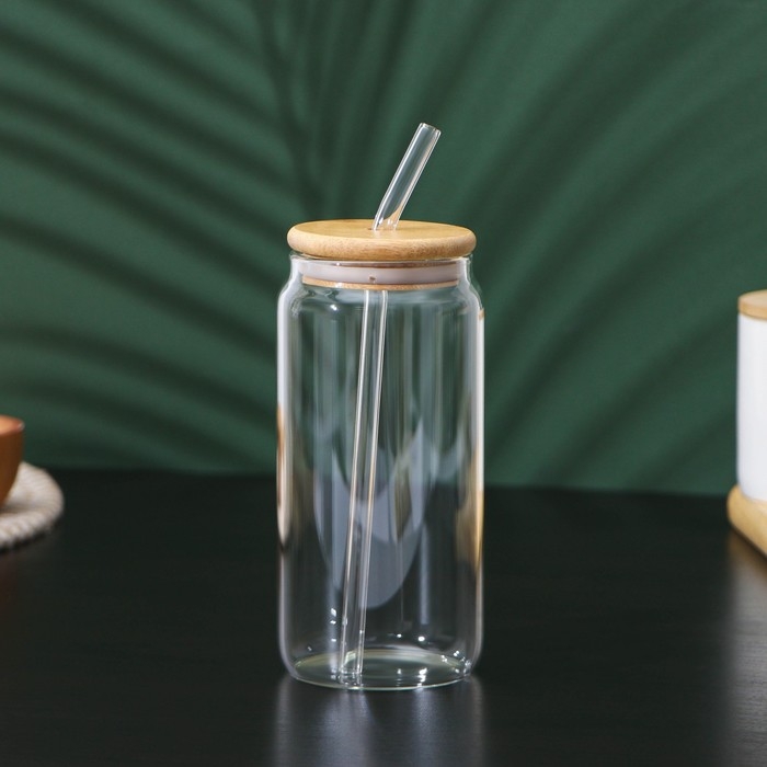 Стакан стеклянный с трубочкой «Эко», 500 мл, 7,5×15,5 см