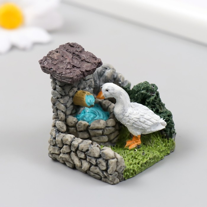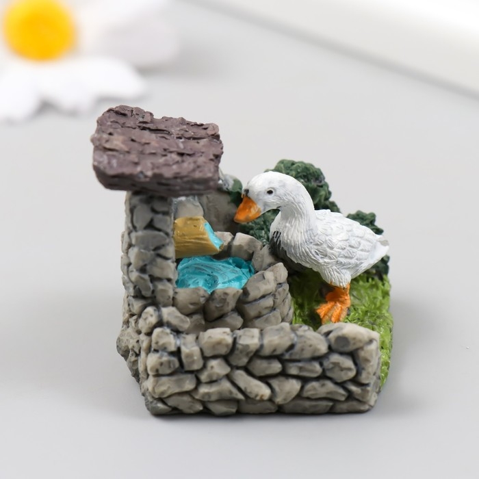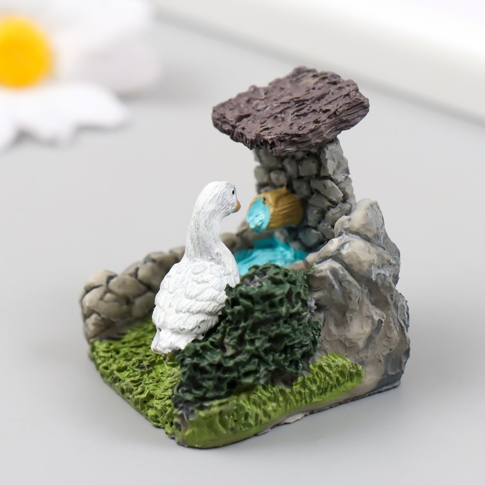 Фигурка для флорариума полистоун "Уточка у фонтана" 4х4х4 см