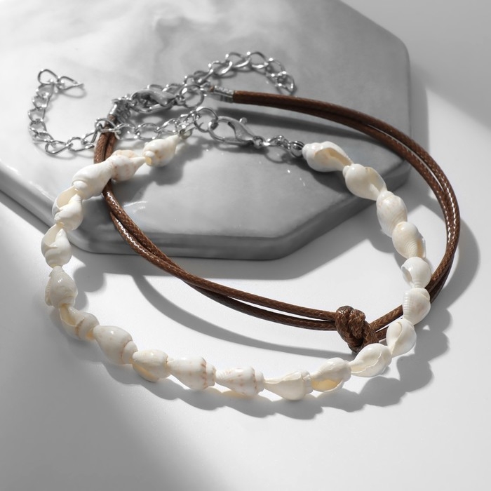 Браслеты на ногу «Ракушки», цвет бело-коричневый в серебре