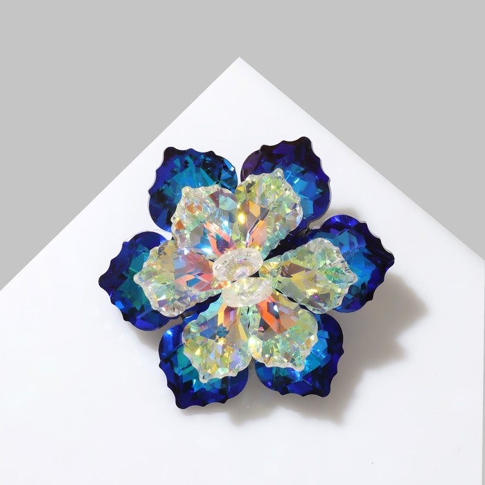 Брошь «Цветок» сказочный, цвет радужно-синий в серебре