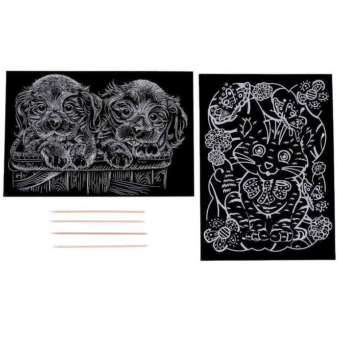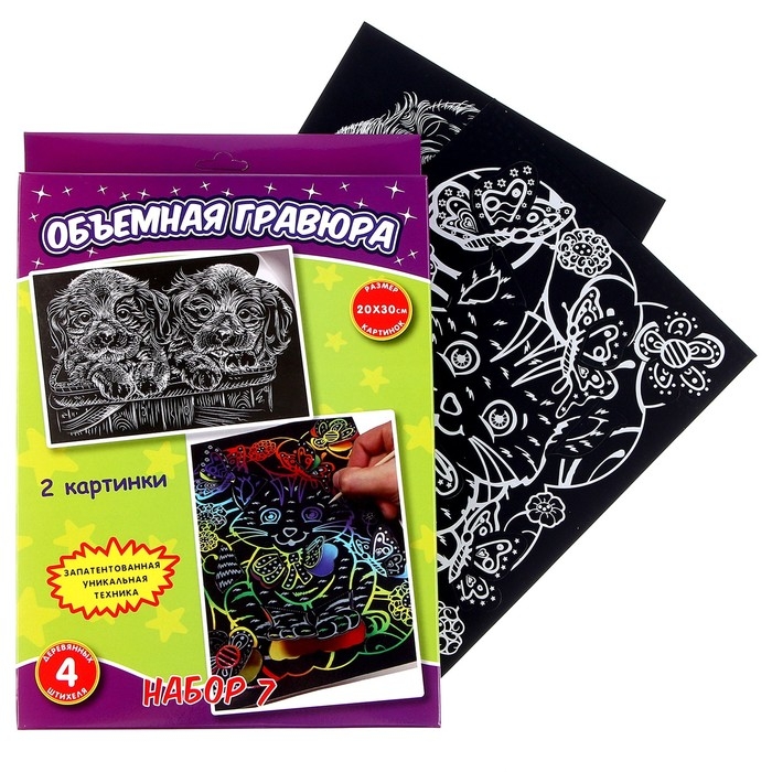Гравюра детская «Котик и собачки», объёмная