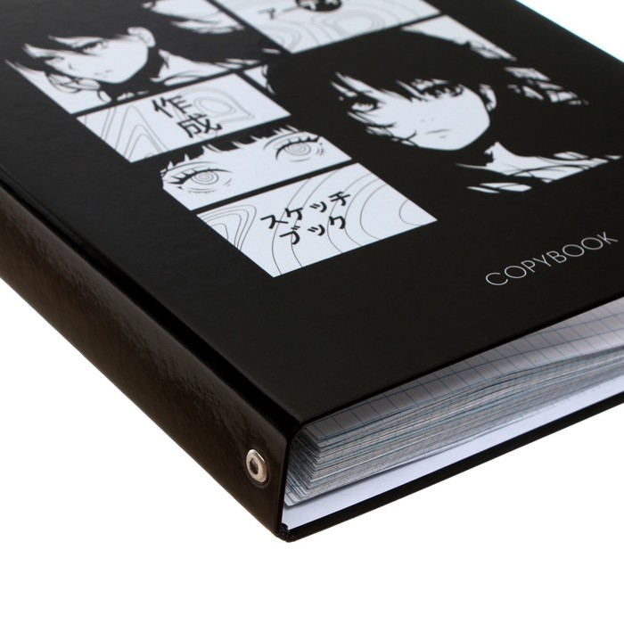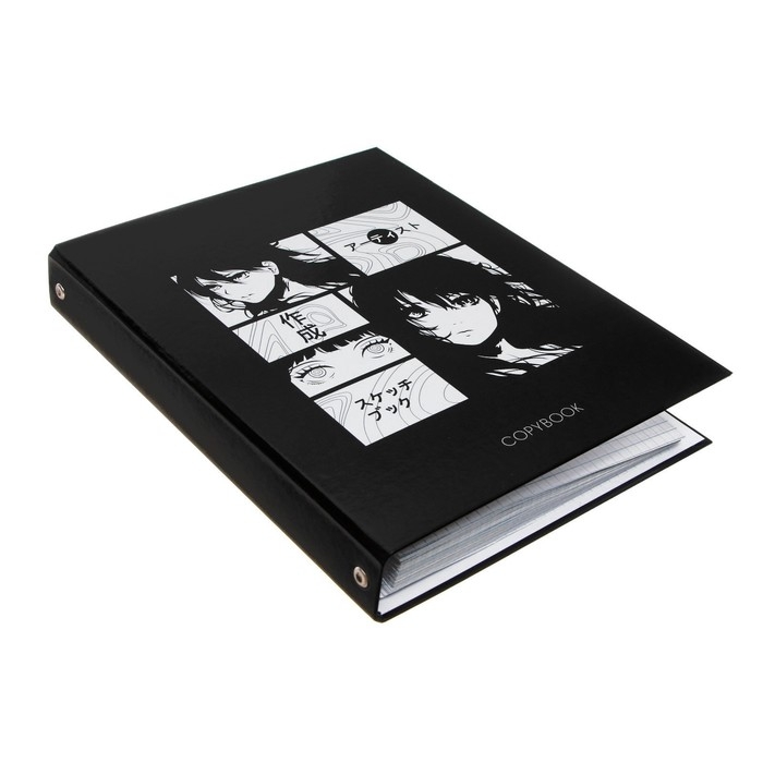 Тетрадь на кольцах A5 80 листов в клетку Calligrata "Аниме. Ч/Б" обложка 7БЦ, без вырубки под кольца, блок офсет