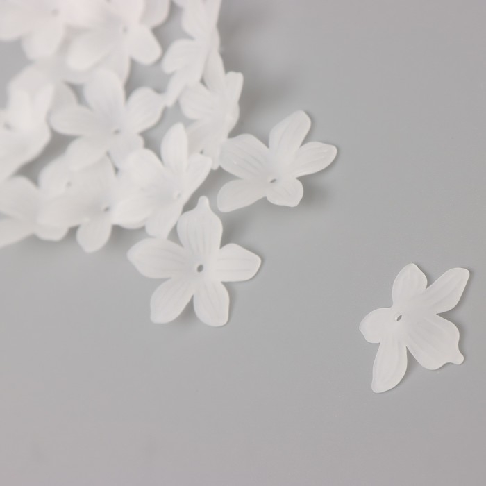 Бусины для творчества пластик "Петуния белая матовая" набор 40 шт 2х2 см