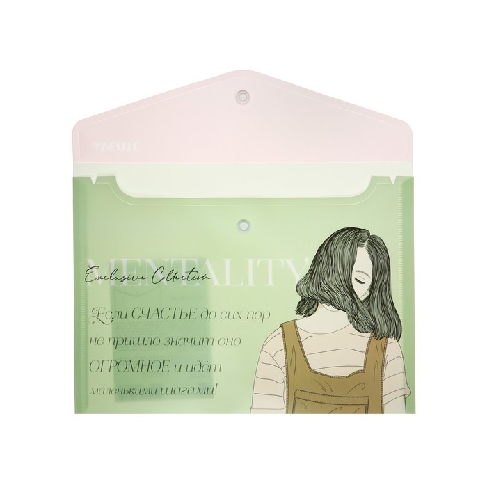 Папка-конверт на кнопке deVENTE. Mentality A5 (240 x 180 мм) 180 мкм, непрозрачная с рисунком, индивидуальная маркировка, 2 дизайна ассорти.