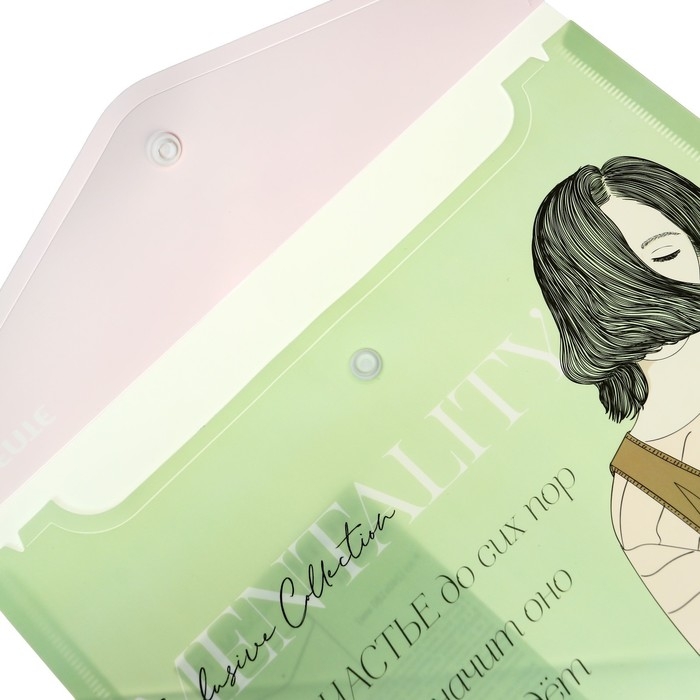 Папка конверт на кнопке А4, 180 мкм, Calligrata, полупрозрачная, с горизонтальным расширением, микс