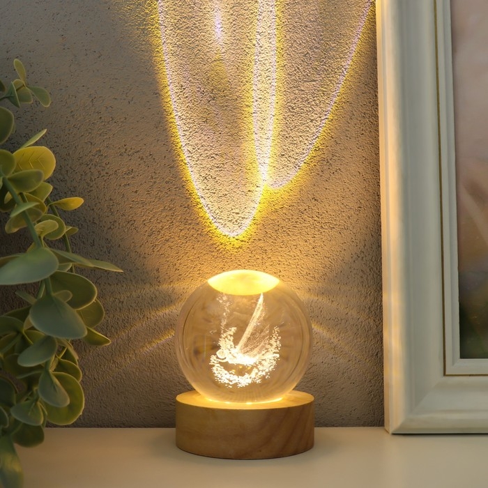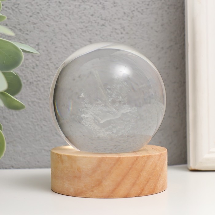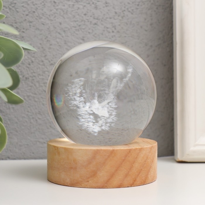 Сувенир стекло подсветка "Фея" d=6 см подставка дерево, USB 6,5х6,5х7,5 см