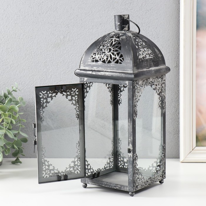 Подсвечник металл фонарь "Цветок и узоры" 13х13х33 см