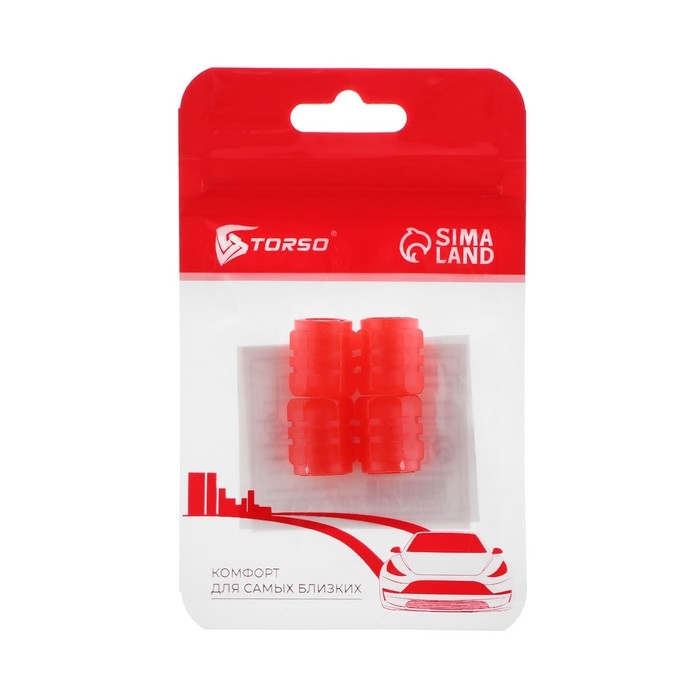 Колпачок на вентиль TORSO, красный, набор 4 шт
