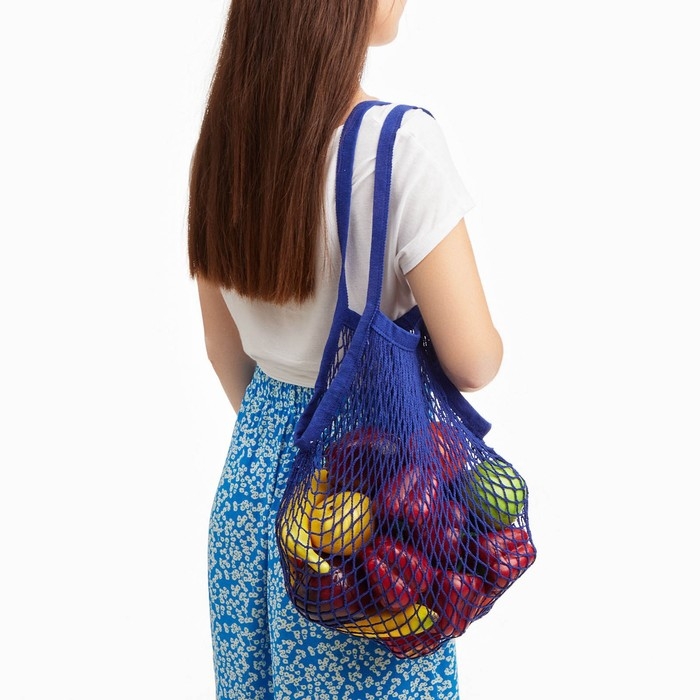 Авоська 37 х 20 см, ручка 12 см, клетка 1.5 см, синяя