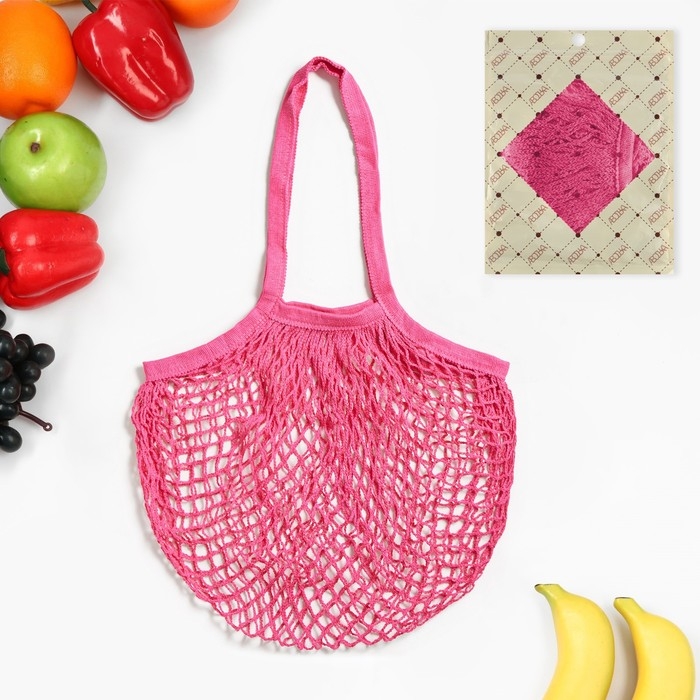Авоська плетеная сумка, 41 х 27 см, ручка 17 см, клетка 1.5 см, розовая