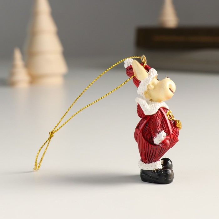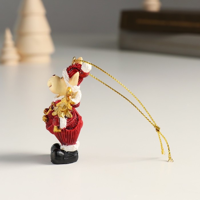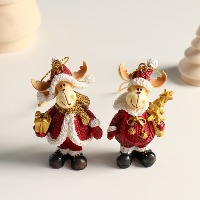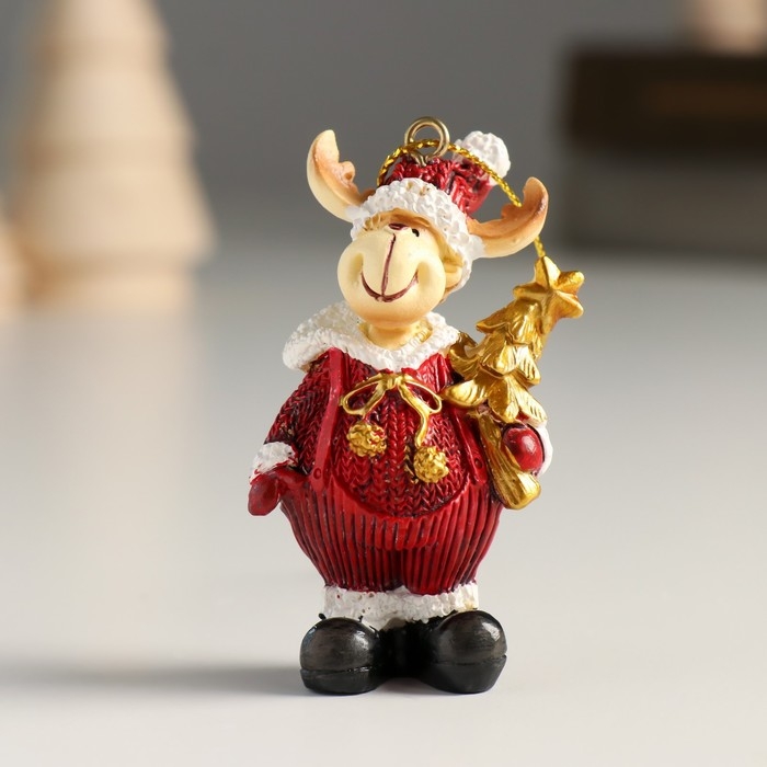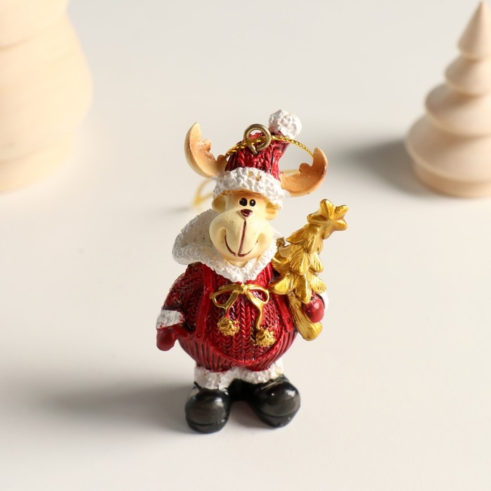 Сувенир полистоун подвеска "Лосик в вязаном наряде, ёлка/подарок" золото МИКС 4,5х3х6,5 см