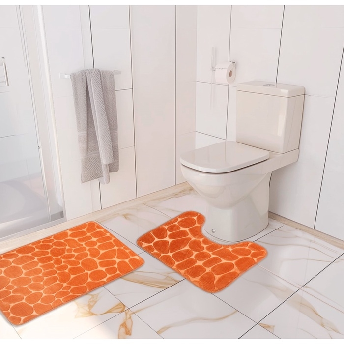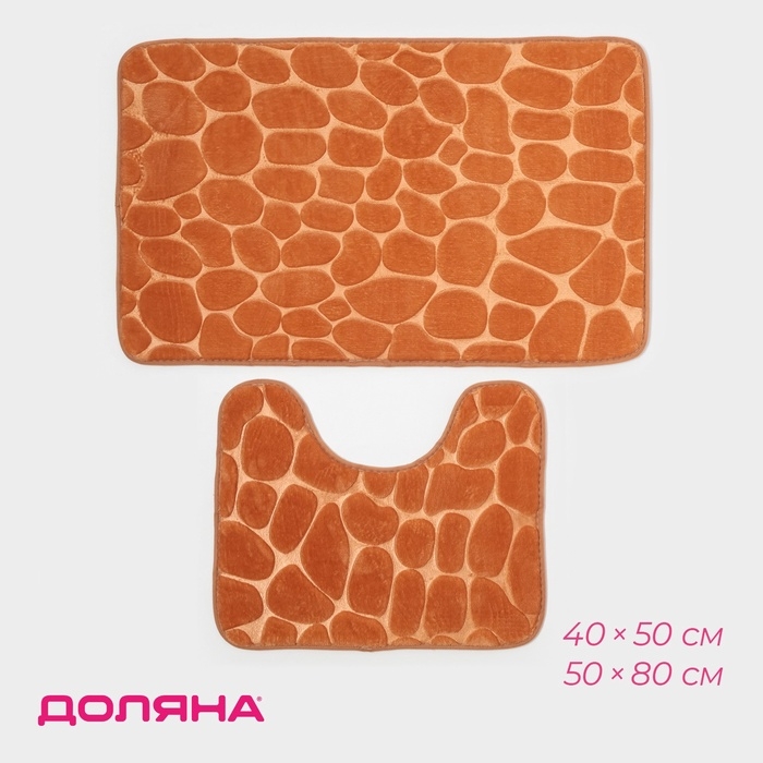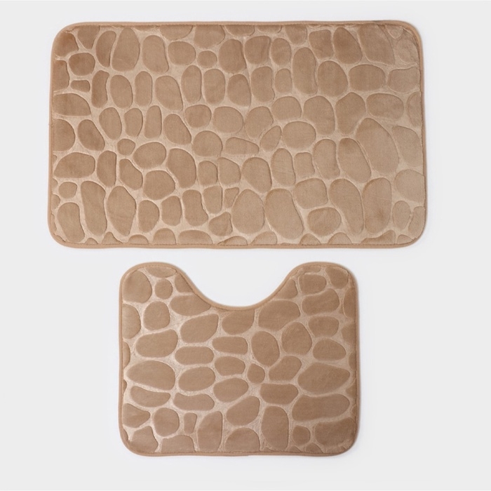 Коврики для ванной и туалета Доляна «Камни», 2 шт, 40×50, 50×80 см, цвет бежевый