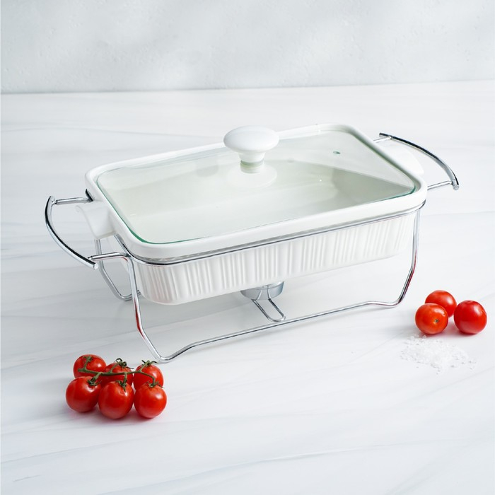 Мармит из жаропрочного стекла, 3 л, 44×25×17 см, с крышкой, на подставке