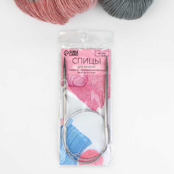 Спицы круговые, для вязания, с металлическим тросом, d = 5 мм, 14/80 см