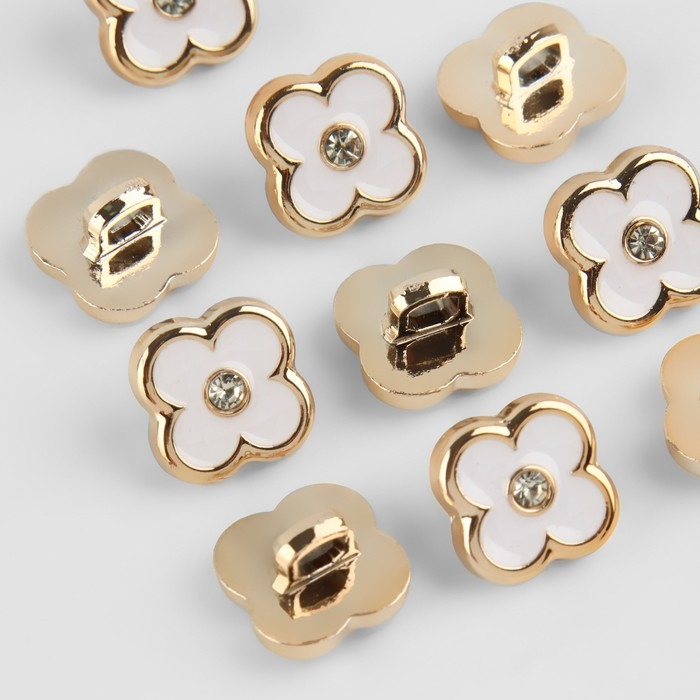 Набор пуговиц на ножке, d = 13 мм, 10 шт, цвет белый/золотой