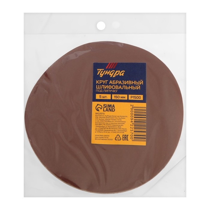 Круг абразивный шлифовальный под "липучку" ТУНДРА, 150 мм, Р1500, 5 шт.