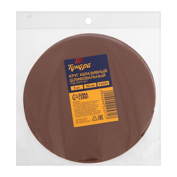 Круг абразивный шлифовальный под "липучку" ТУНДРА, 150 мм, Р2000, 5 шт.