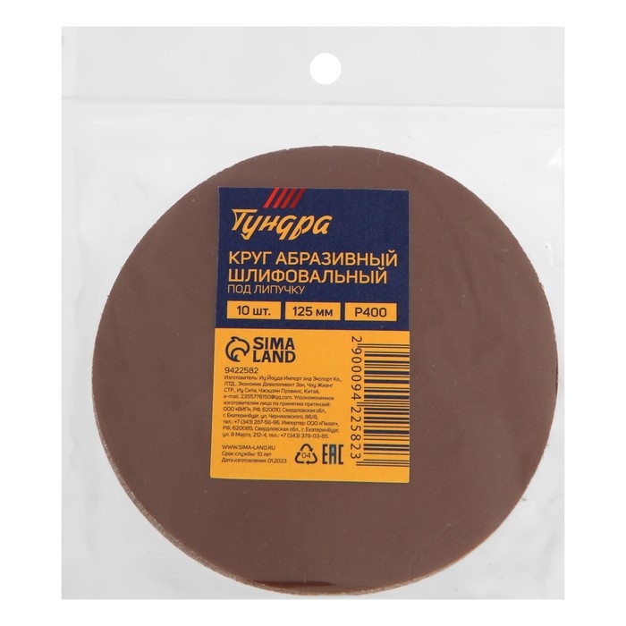 Круг абразивный шлифовальный под "липучку" ТУНДРА, 125 мм, Р400, 10 шт.