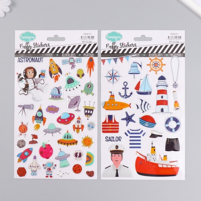 Наклейка пластик "Моряк/Космонавт" с блёстками МИКС 14х25 см