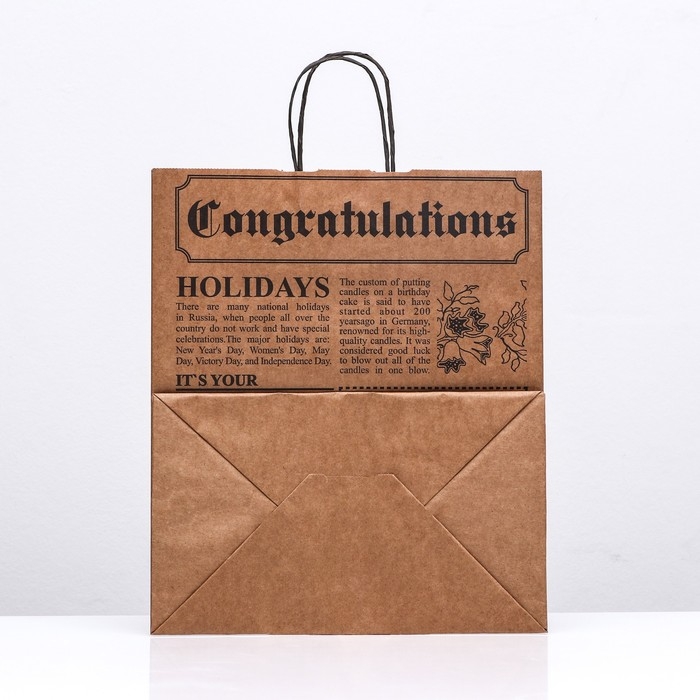 Пакет крафт "Газета" коричневая 32 х 19,5 х 37 см
