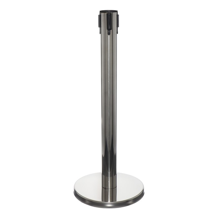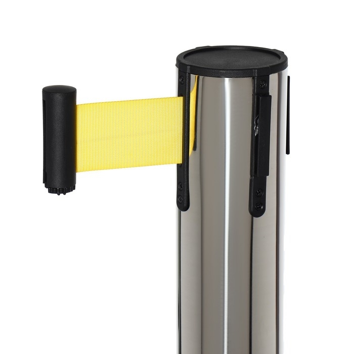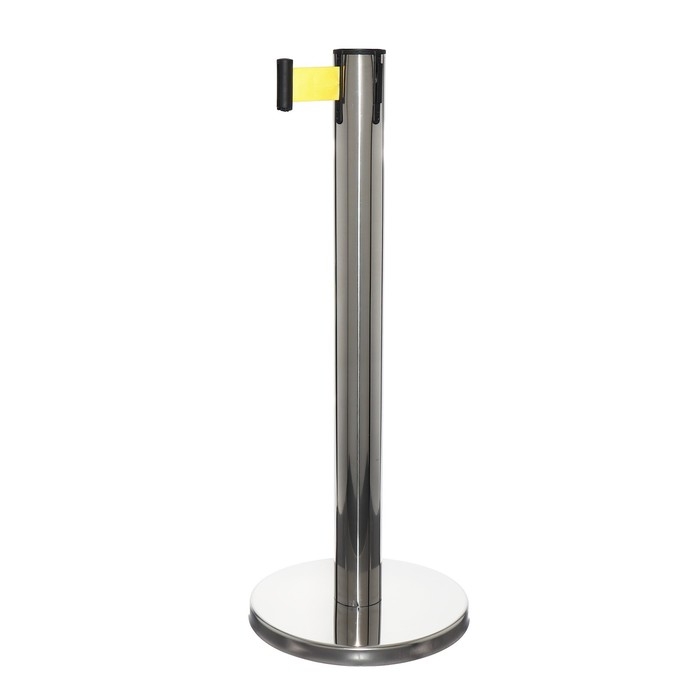 Стойка ограждения серебряная, с вытяжной лентой-470 см желтая, высота-90см, d-11см,напольный d-35см