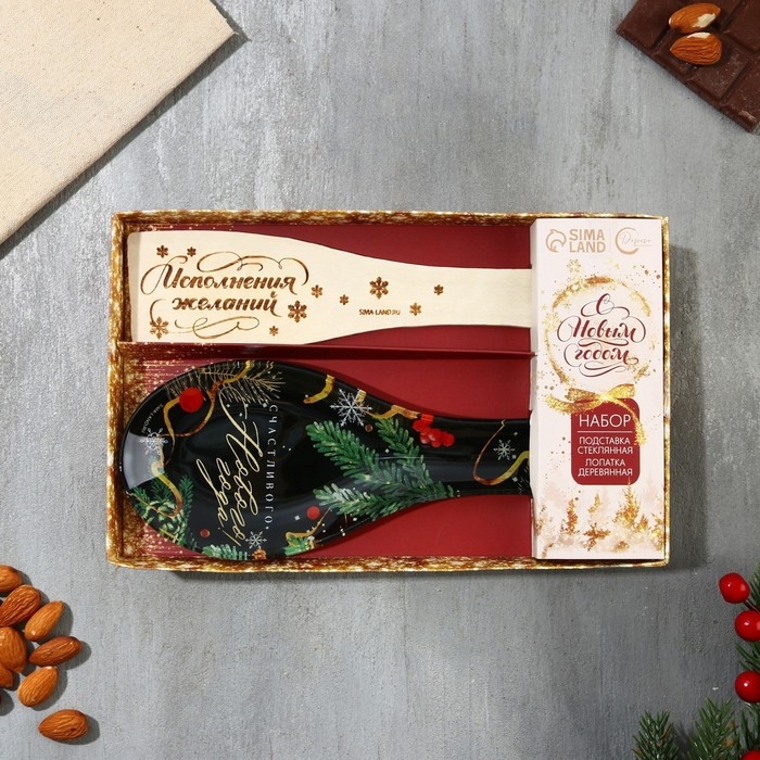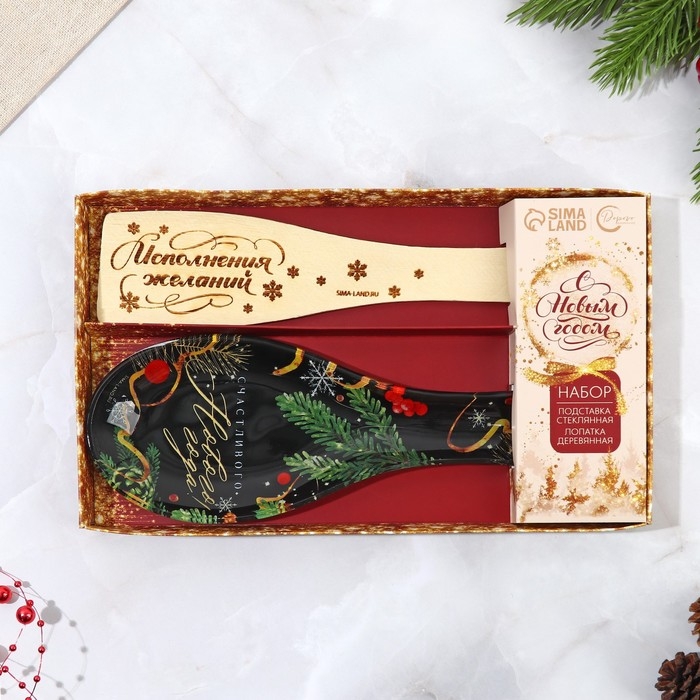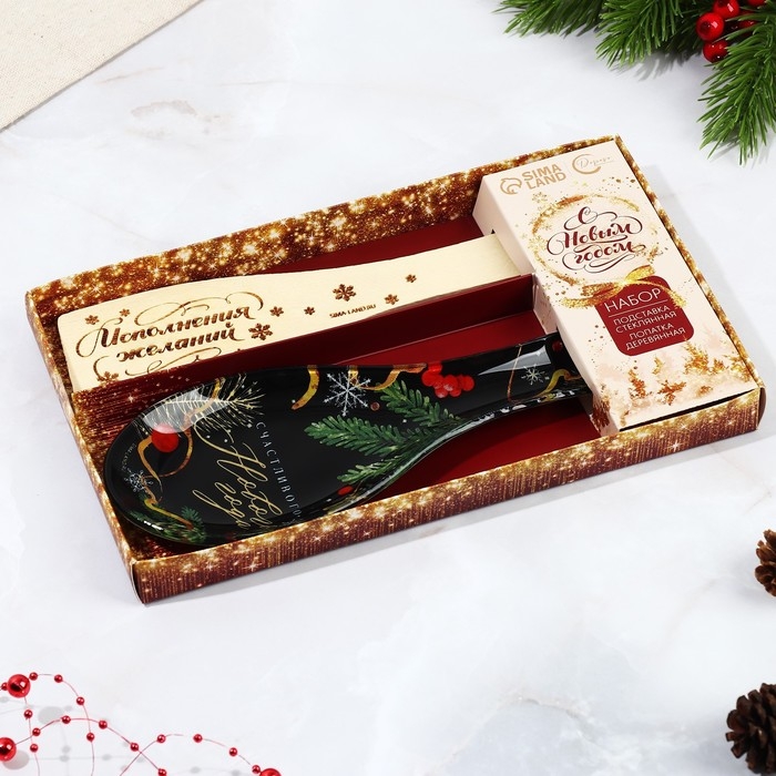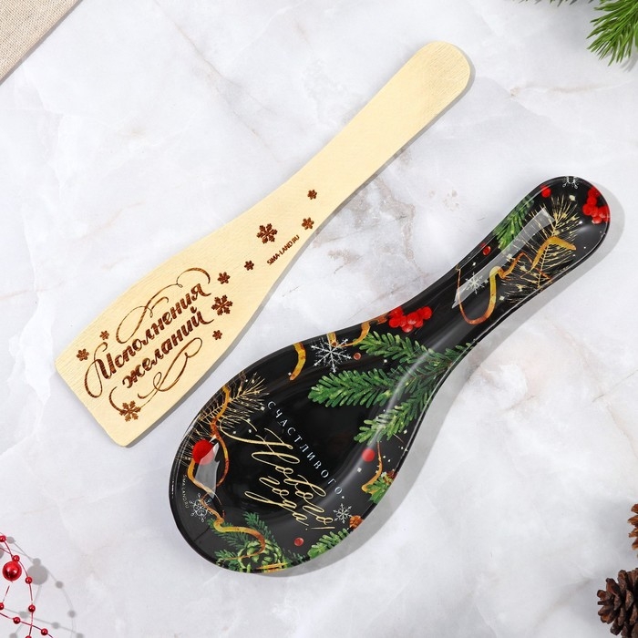 Подарочный набор новогодний «Счастливого Нового года»: подставка под ложку, лопатка
