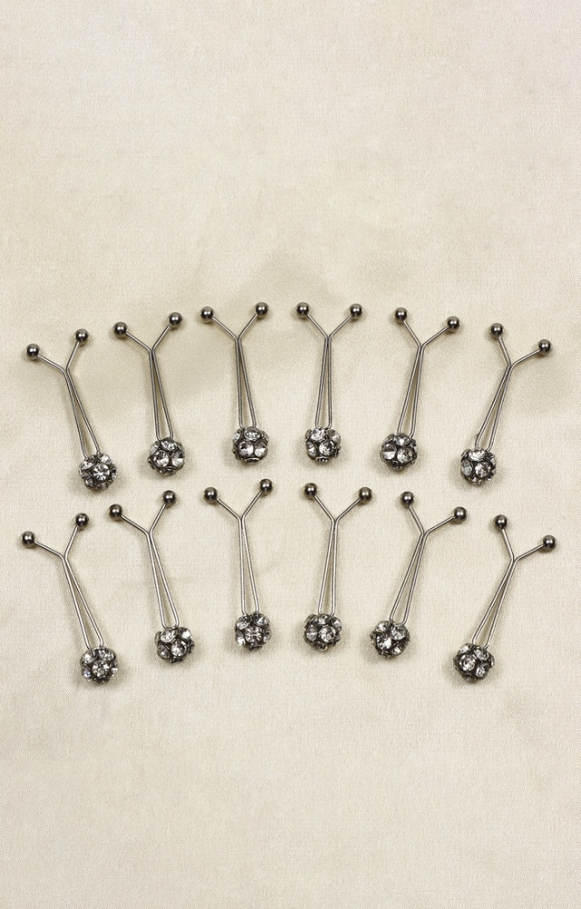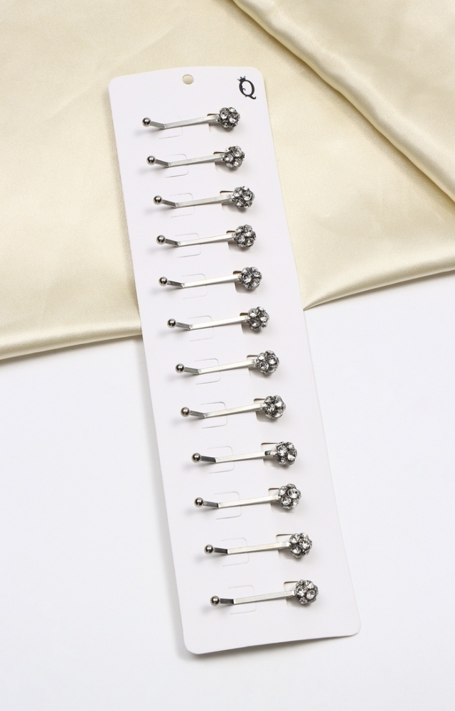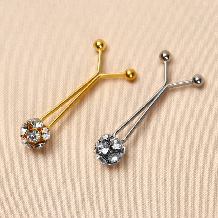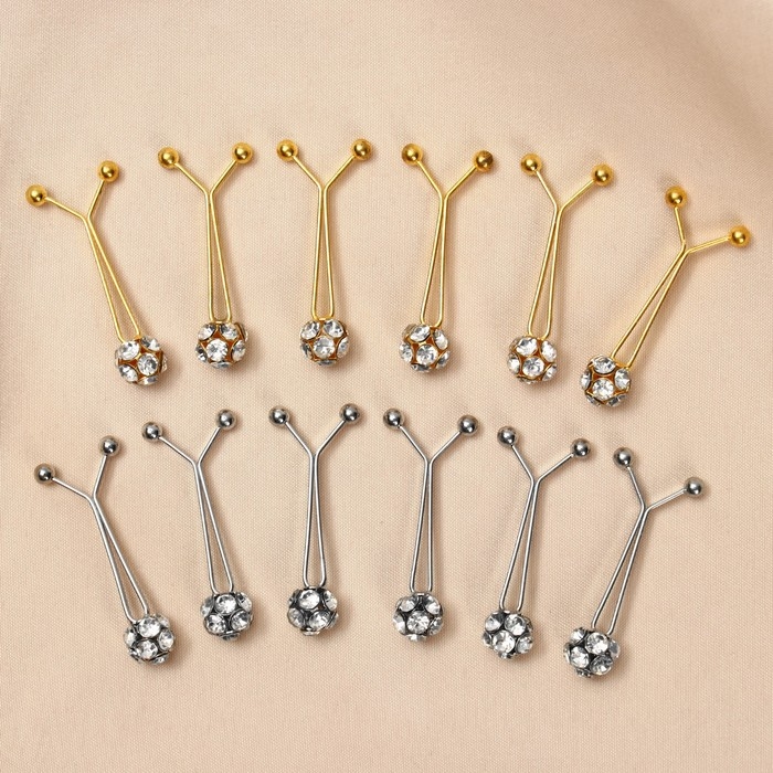 Зажим для платка «Хрусталь» шарик, цвет белый в серебре (неделимая фасовка 12 шт., цена за шт.)
