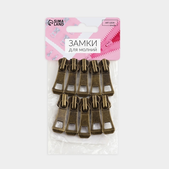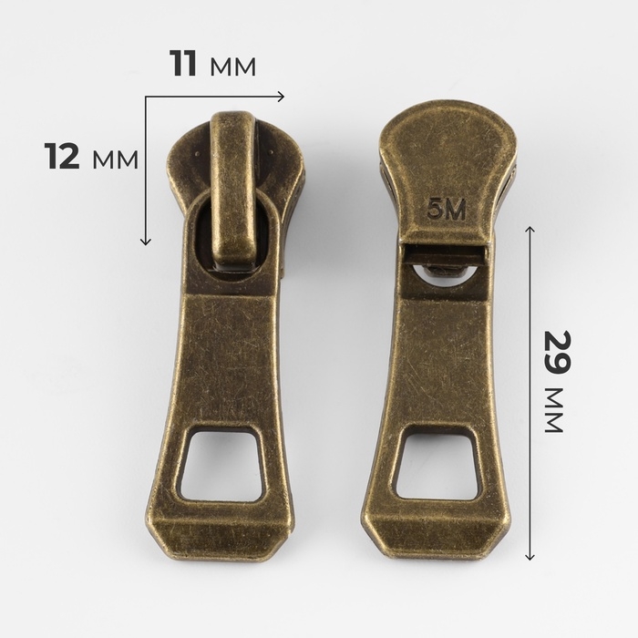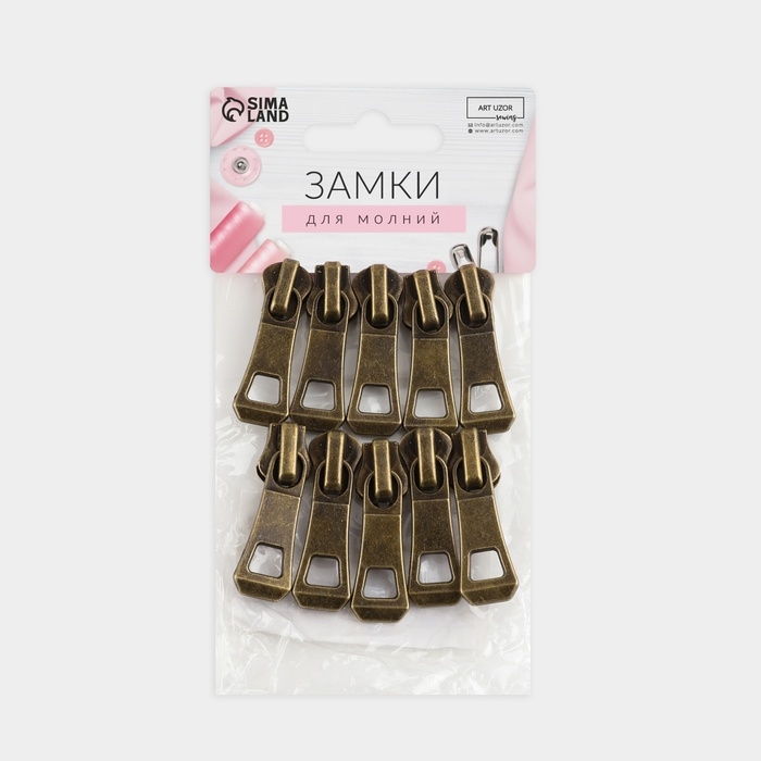 Бегунок автоматический для металлической молнии, №5, 10 шт, цвет антик