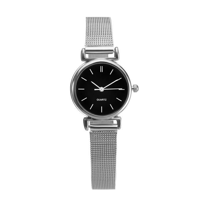 Часы наручные женские кварцевые "Ливато", d-3.7 см, черные