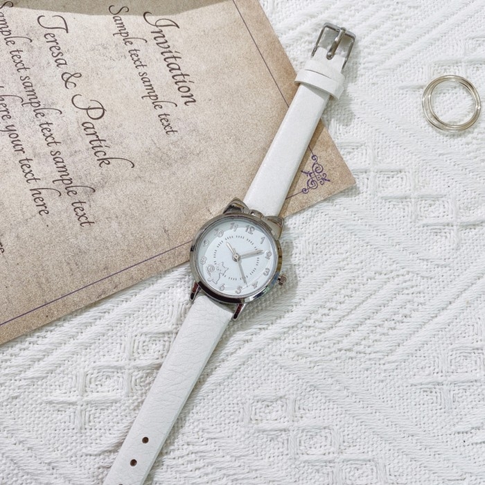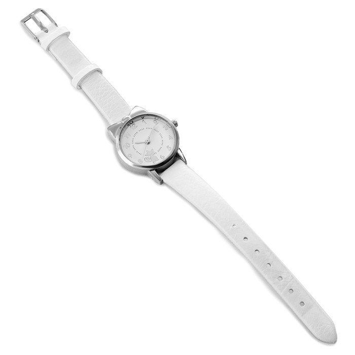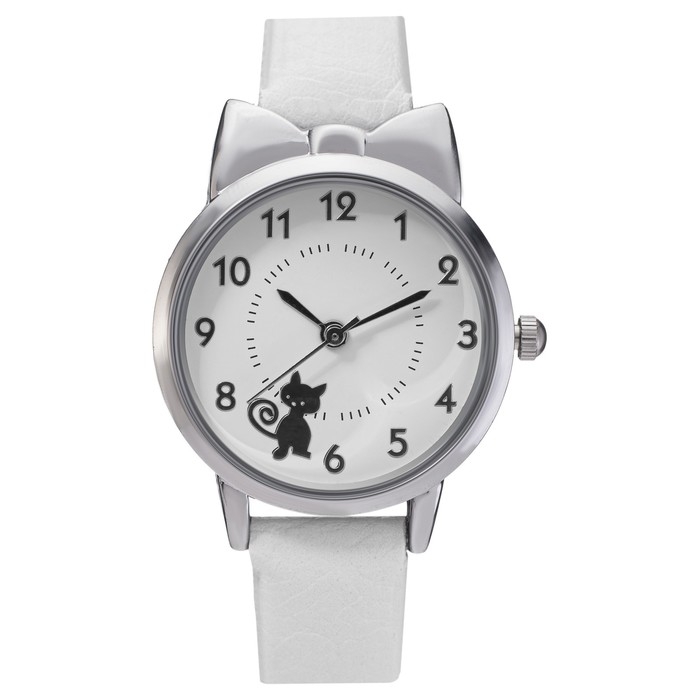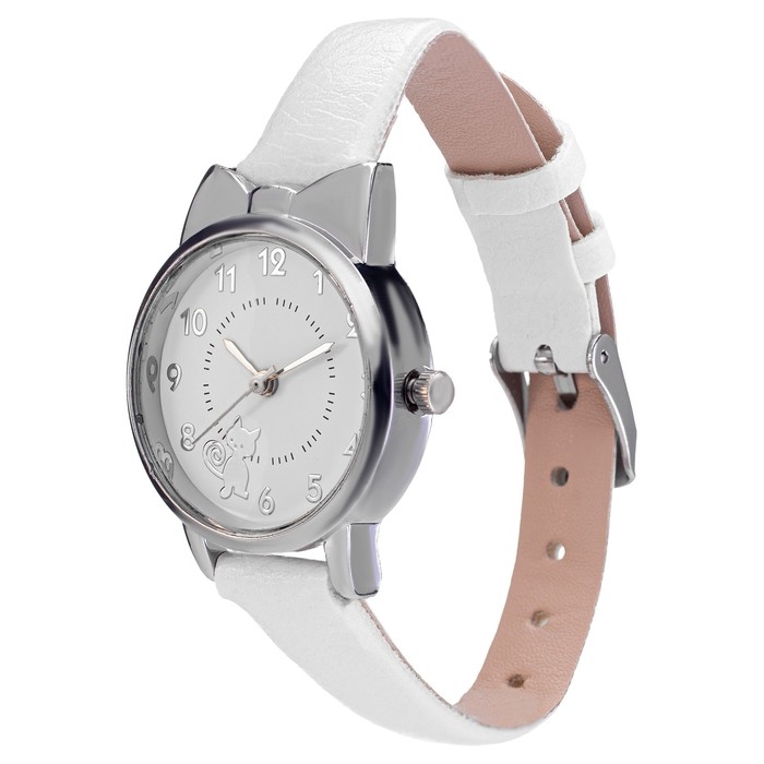 Часы наручные женские "Котик", d-2.8 см, белый ремешок