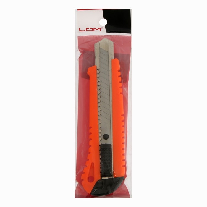Нож универсальный ЛОМ, пластиковый корпус, металлическая направляющая, 18 мм