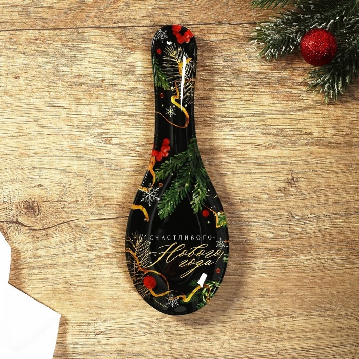 Подставка под ложку новогодняя Дорого внимание «На счастье», 21,4 х 7,5 см, стекло