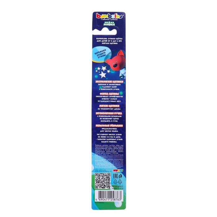 Детская зубная щетка Bambolina Ми-ми-мишки "Космонавт" мягкая 2+ — это специально разработанная зубная щетка для детей от 2 лет и старше. Она создана с учетом особенностей детской анатомии и предназначена для эффективного очищения зубов и массажа десен.