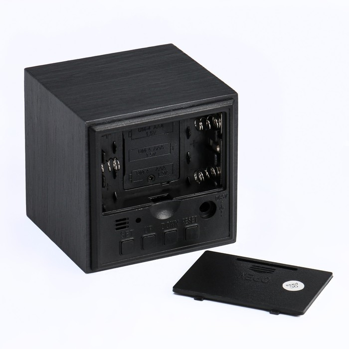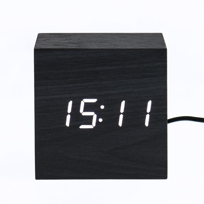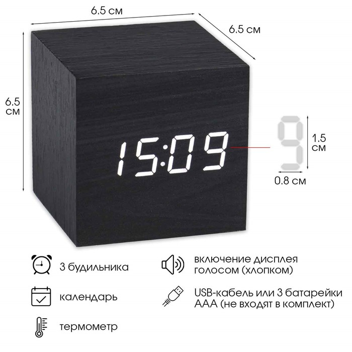 Часы - будильник электронные "Цифра" настольные с термометром, деревянные, 6.5 см, ААА, USB