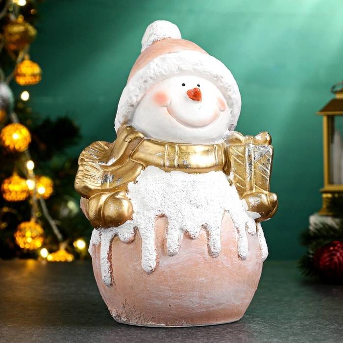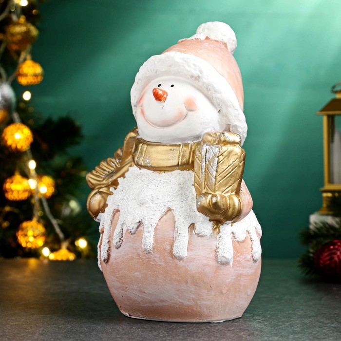 Фигура "Снеговик с подарком" 14,5х22см