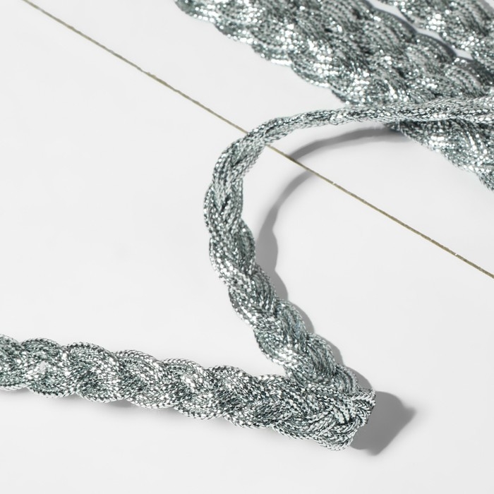Тесьма декоративная «Косичка», 8 мм, 10 ± 1 м, цвет серебряный